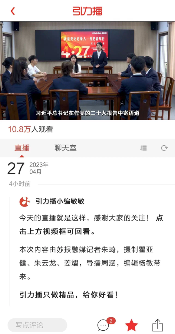 4月27日是苏州解放74周年纪念日,为学习贯彻习近平新时代中国特色社会主义思想和党的二十大精神,传承红色基因,赓续红色血脉,中共苏州市委党史工作办公室联合苏州市园林和绿化管理局、苏州日报社,在引力播开展“我是党史记录人——红色青年行”云上思政课。欧冠直播 研究生党支部的党员和积极分子代表和枫桥景区的党员代表在枫桥铁铃关参加现场学习,在引力播客户端收看课程的党员群众达10.8万人次。