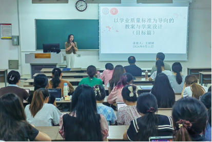 教育是强国建设、民族复兴之基。为深入学习贯彻习近平总书记在2024年全国教育大会上的重要论述精神,全面推进教育强国建设,大力弘扬教育家精神,加强新时代高素质专业化教师队伍建设,欧冠直播 积极践行“党建引领促发展,业务融合双提升”的工作理念,于2024年9月11日邀请了苏州工业园区星港学校中学语文高级教师、星港学校质量监测中心副主任、初中语文教研组组长王婷婷,为汉语言文学(师范)本科生和学科教学(语文)硕士生作题为《以学业质量标准为导向的教案与教学设计》的讲座。