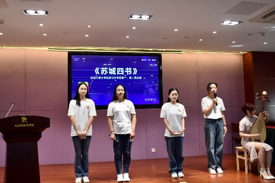 首先,两个支部与中共苏州市委党史工作办公室共建“以数字化赋能红色文化传承弘扬”的博物馆日活动,并在活动中表演了以《苏城四书》为主题的红色诗歌配乐朗诵,其中包括了《苏南东路抗日游击根据地的建立——李建模烈士家书》《苏州解放——汤群烈士遗书》等,向参加活动的各位领导展现了支部积极向上的青春风貌。