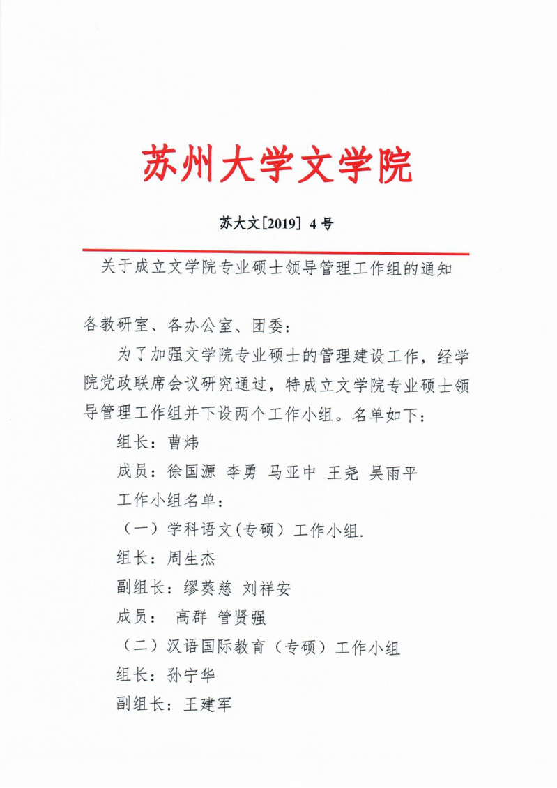 关于成立欧冠直播 专业硕士领导管理工作组的通知