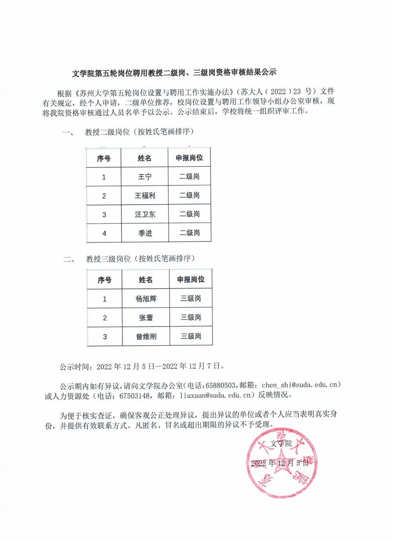 欧冠直播 第五轮岗位聘用教授二级岗、三级岗资格审核结果公示