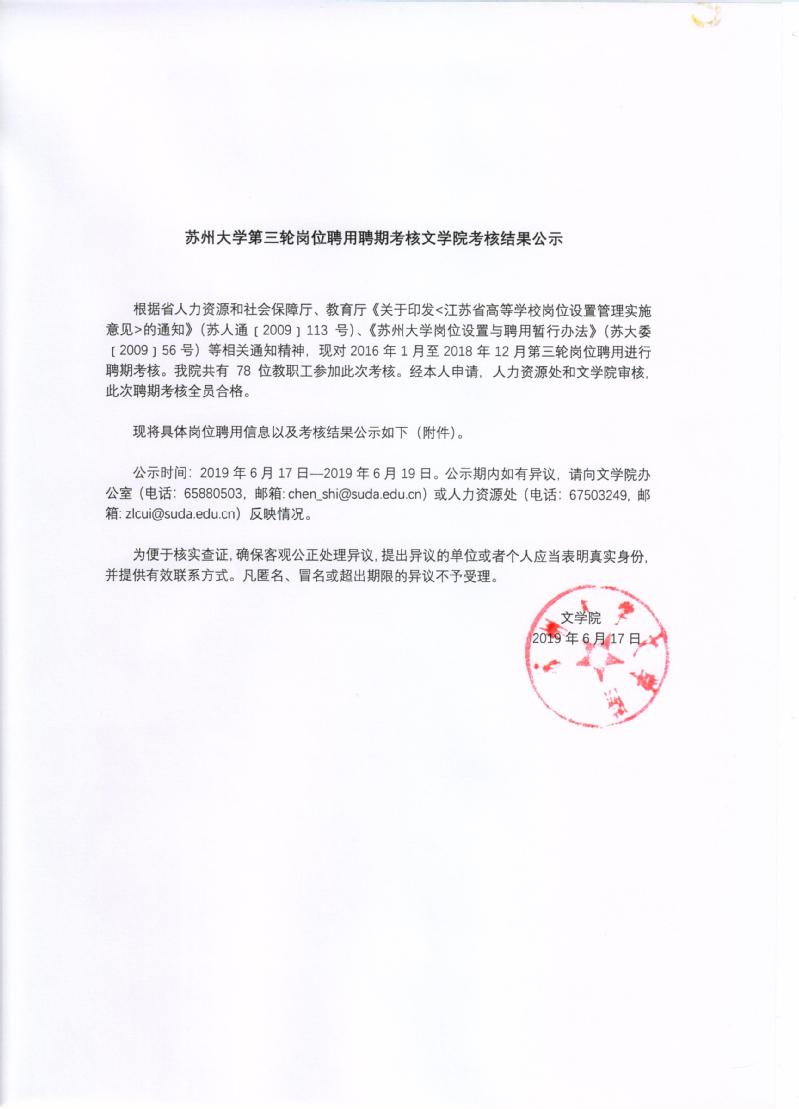 欧冠直播 第三轮岗位聘用聘期考核欧冠直播 考核结果公示